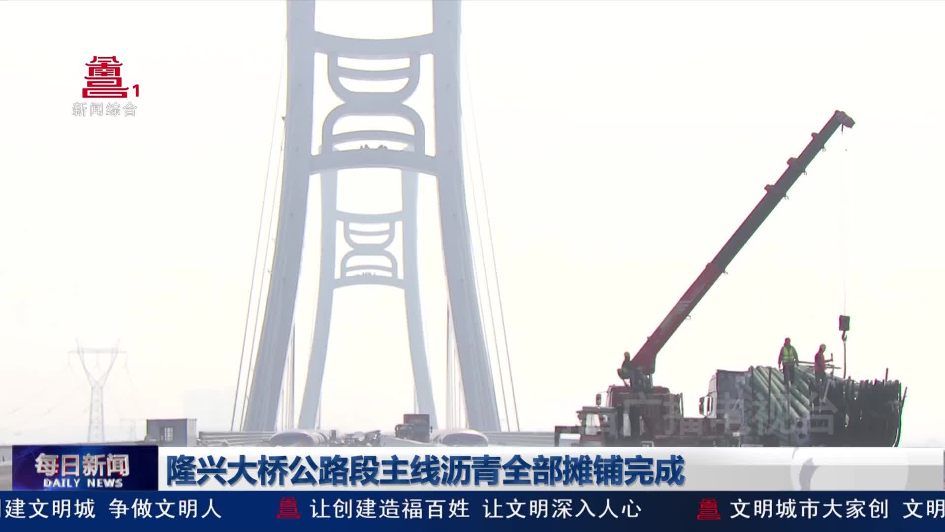 隆兴大桥公路段主线沥青全部摊铺完成