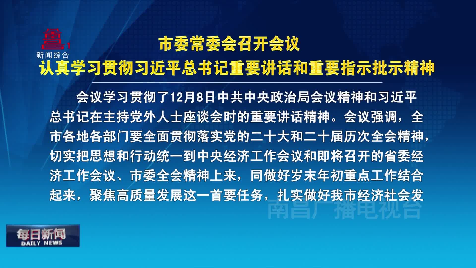 市委常委会召开会议 认真学习贯彻习近平总书记重要讲话和重要指示批示精神