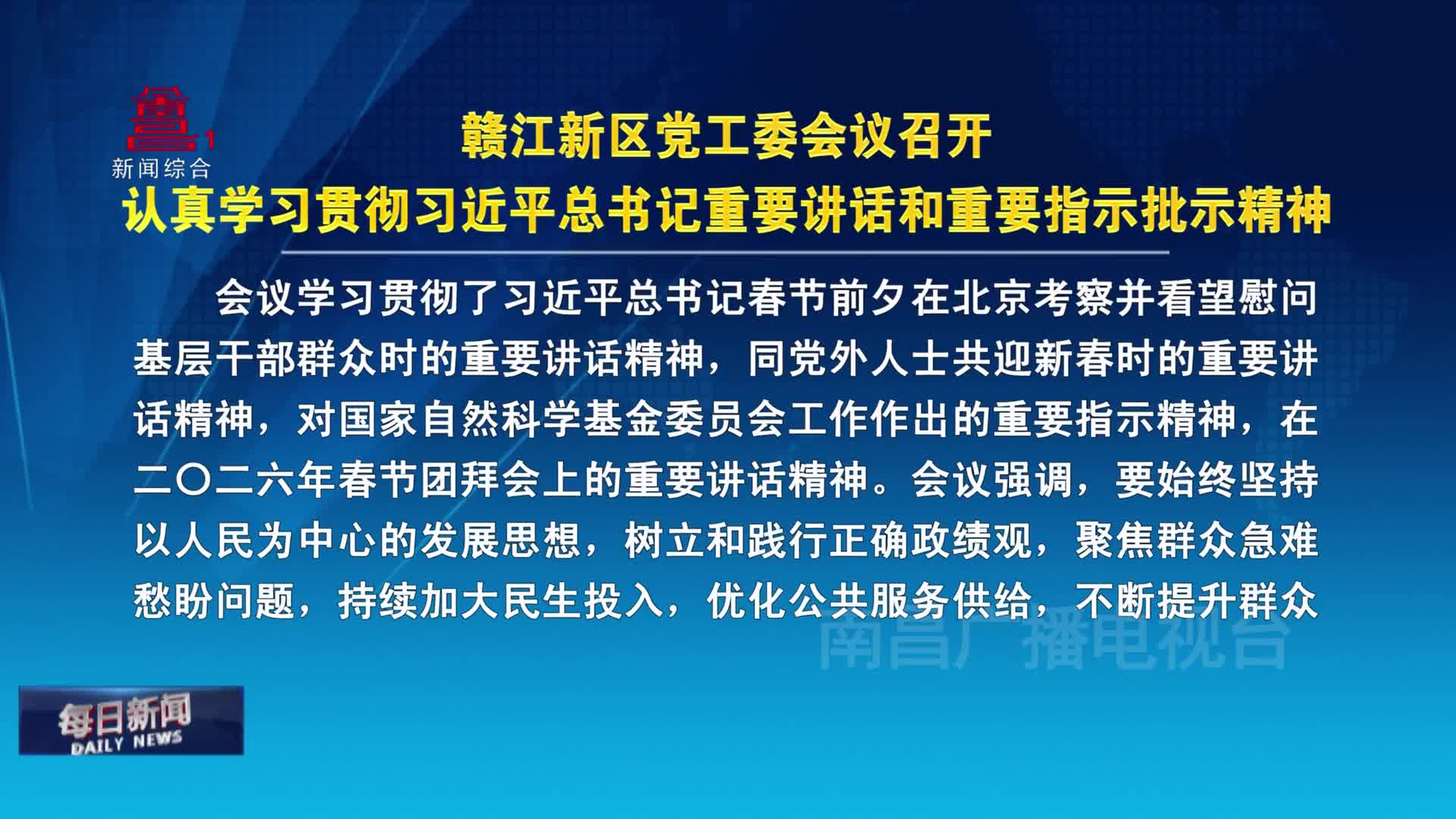 赣江新区党工委会议召开 认真学习贯彻习近平总书记重要讲话和重要指示批示精神