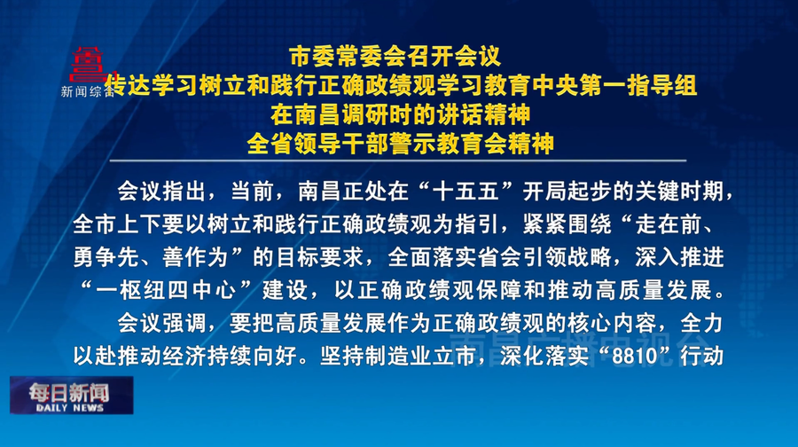 市委常委会召开会议 传达学习树立和践行正确政绩观学习教育中央第一指导组在南昌调研时的讲话精神、全省领导干部警示教育会精神