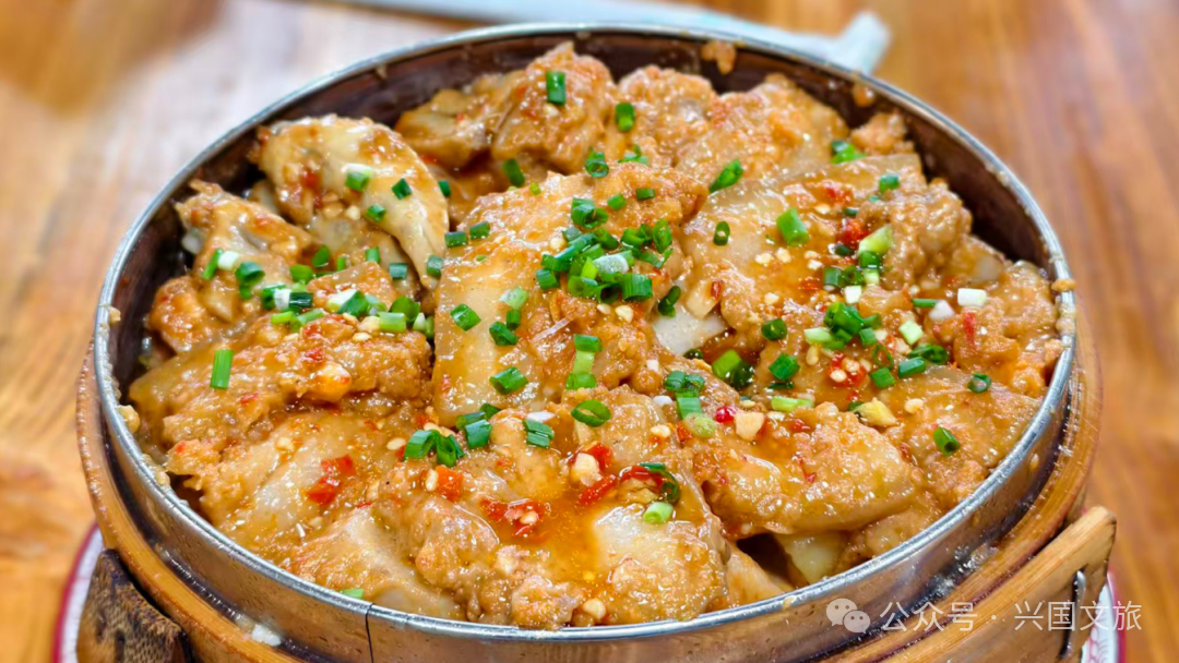 粉笼床:兴国的粉笼床包括粉鱼、粉鸭、粉鹅以及粉鸡翅等多种选择,同时还会配以芋子、豆角等各式素菜。每一口都充满了糯香,米粉的油润更是让人回味无穷。