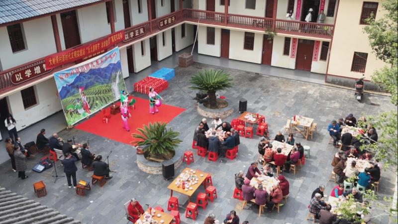 在江西省赣州市,安远县、兴国县等地的乡村社区工作人员、志愿者们为老人们设下了敬老宴,制作了薯粄、薯包、四星望月等特色客家美食,组织老人们围坐品尝,还邀请赣南采茶戏团登台表演。通过一席客家宴、一台采茶戏,陪伴老人们欢度佳节。“戏好看,饭也好吃,大家觉得很温暖。”安远县欣山镇大岭背村村民刘上正高兴地说。