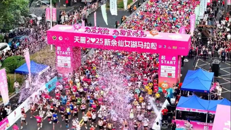 当天一早,新余市城区的街道熙熙攘攘,2.2万名选手依次冲出起跑线,在赛道上挥洒汗水,朝着终点一路奔跑。本次马拉松采用新科技元素,首次启用AI智能直播系统,多视角直播画面搭配实时数据追踪,让观众在线上同步感受选手的精彩瞬间。在赛道之外,100多个特色的摊位沿着赛道周边排布,组成了人气火热的现场市集。新余蜜桔、油茶、中医养生等展位现场展示销售,让参赛选手和游客沉浸式感受地域特产。