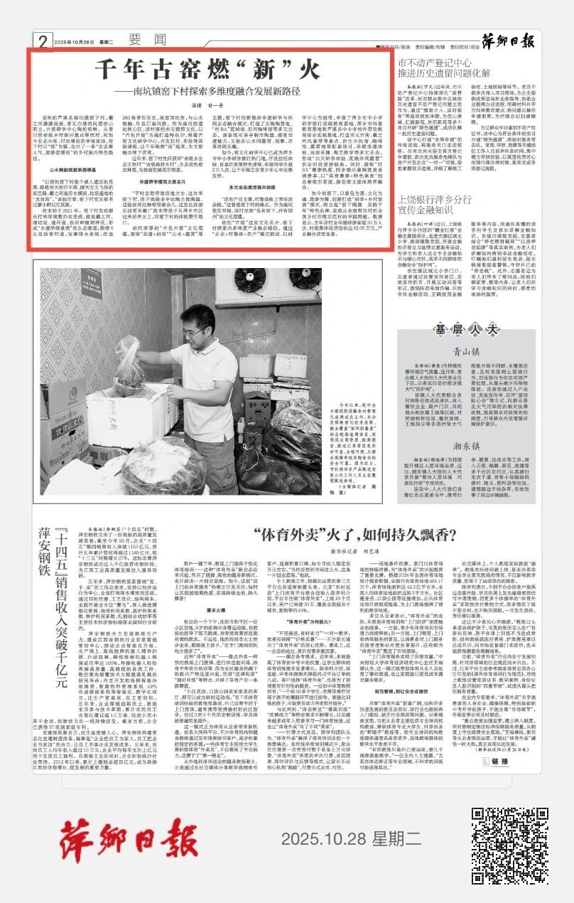 金秋的芦溪县南坑镇窑下村,羲之河潺潺流淌,青瓦白墙的民居依山而立,古窑研学中心陶轮轻转。从昔日的省级乡村振兴重点帮扶村,到如今业态兴旺、村民增收的幸福家园,窑下村以“窑”为媒,走出了一条“业态聚人气、旅游促增收”的乡村振兴特色路径。
