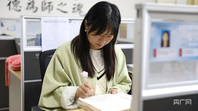 刘小娟正在批改作业(央广网记者胡斐 摄)