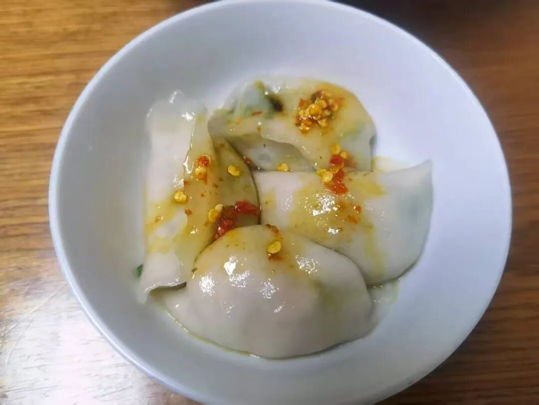 馅料是芋饺的灵魂,也藏着冬至的鲜意。半肥瘦的猪肉剁成泥,搭配切碎的韭菜、香菇与冬笋,淋上一勺现熬猪油激香,简单调味便足见本真。家人围坐,指尖翻飞间,一个个三角状的芋饺成型,像极了饱满的金元宝,寓意着冬日富足、阖家团圆。冷水下锅,煮到饺皮鼓胀发亮,捞出后蘸上石城特制辣酱,Q弹的外皮裹着鲜香馅料,一口下去,芋香的清甜与肉鲜的醇厚在舌尖交融,寒意瞬间被暖意驱散。