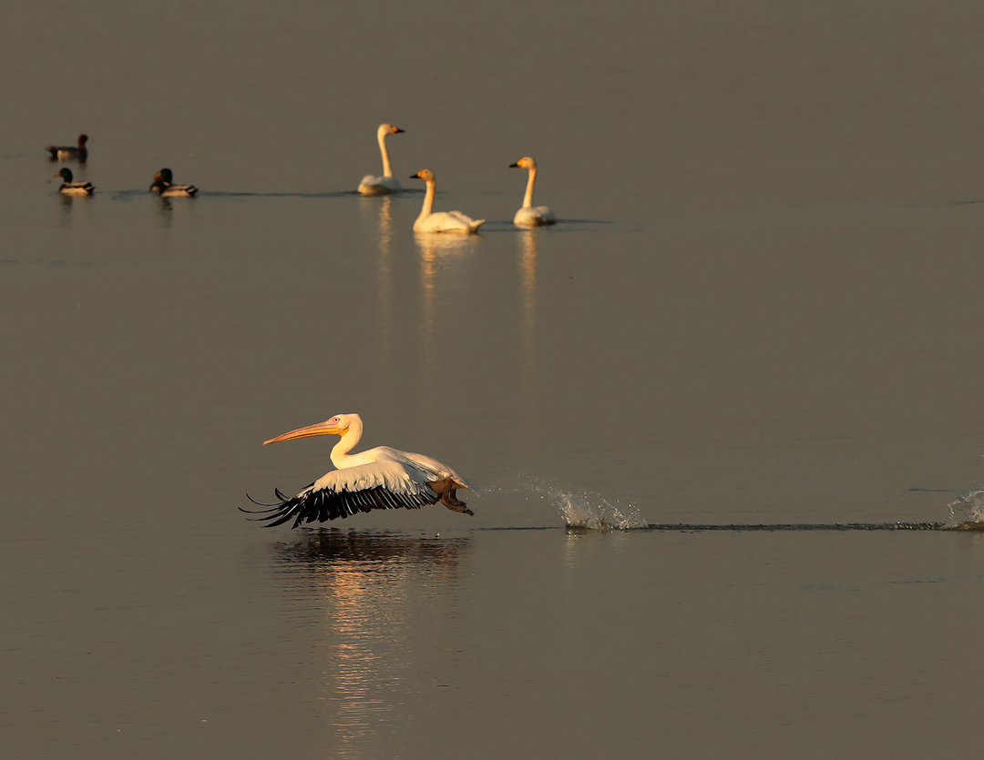 现身鄱阳湖余干水域的白鹈鹕(摄影:雷小勇)