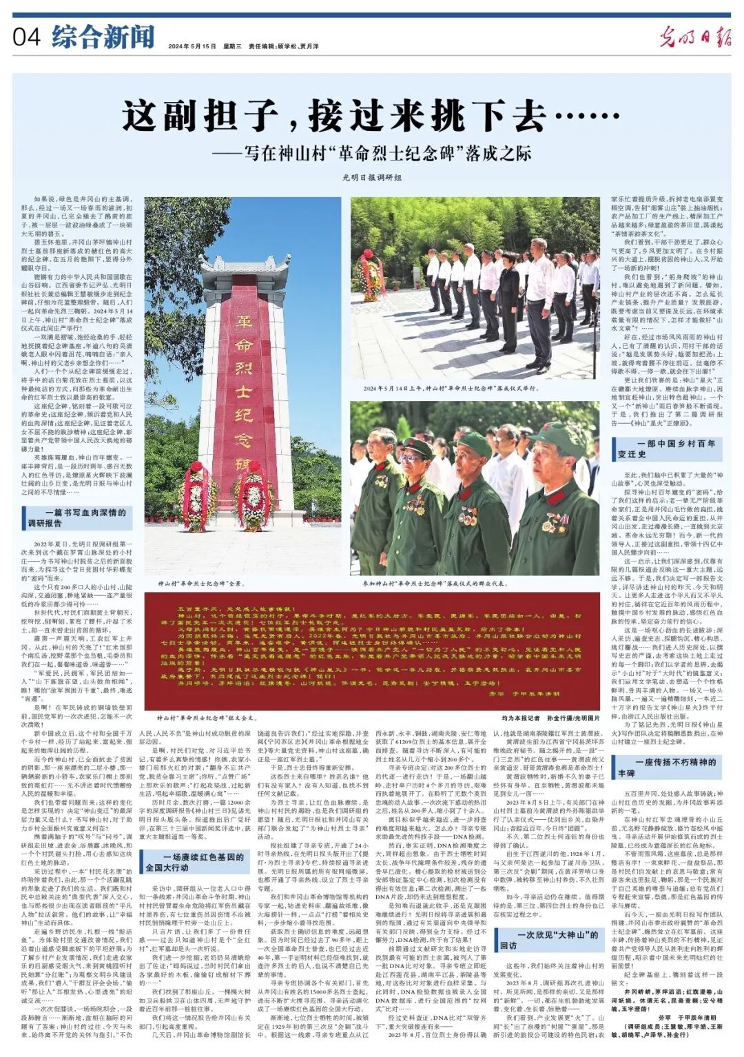 革命烈士纪念碑落成仪式报道 刊于2024年5月15日《光明日报》04版