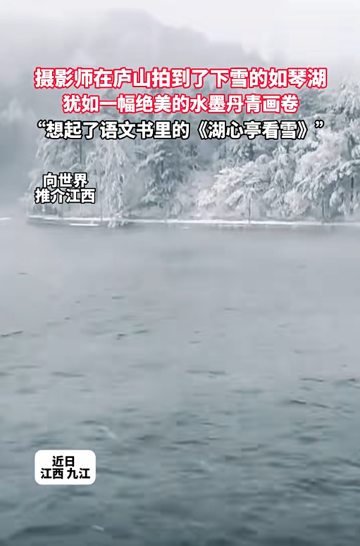 下雪的如琴湖,犹如一幅绝美的水墨丹青画卷。让许多网友想起了语文书里的《湖心亭看雪》,“还好李白没有看到这幅场景,不然又得多背一首诗。