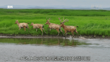 1985年,我国从海外引进麋鹿,而鄱阳湖历史上曾是麋鹿的栖息地之一,2018年4月,47头从北京引进的麋鹿,被野放至鄱阳湖,如今,该种群数量约达80头。