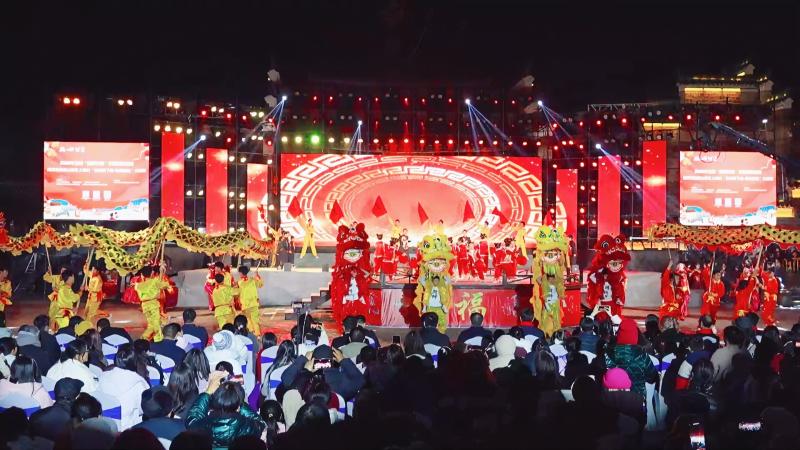 当夕阳西下,古镇的狂欢并未落幕,而是转向了另一番高潮。古戏台前的空地成为天然观众席,以山水为幕布、以天地为舞台的“村晚”在此开场。没有奢华的舞台装置,却有最质朴的情感和最地道的风情。演出散场后,人气依然聚集在小吃市集与非遗摊位,人们品尝美味、挑选年礼,久违的、热烈的年节气氛在此氤氲升腾。