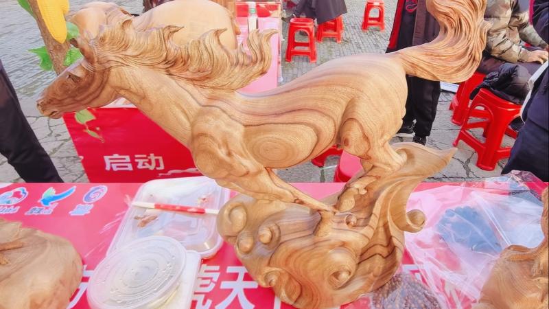 铜雕传承人手持工具细心錾刻,竹编艺人让篾条上下翻飞。在余江木雕传承人童胜富的摊位前,一件为马年新雕的“平步青云”木雕作品引人注目。“希望用传统手艺,为大家送上新年步步高升的祝福。”童胜富说。游客们不仅可以观赏,还能亲手体验打糍粑、制作灯芯糕的乐趣,让非遗从遥远的传说变为触手可及的温暖记忆。