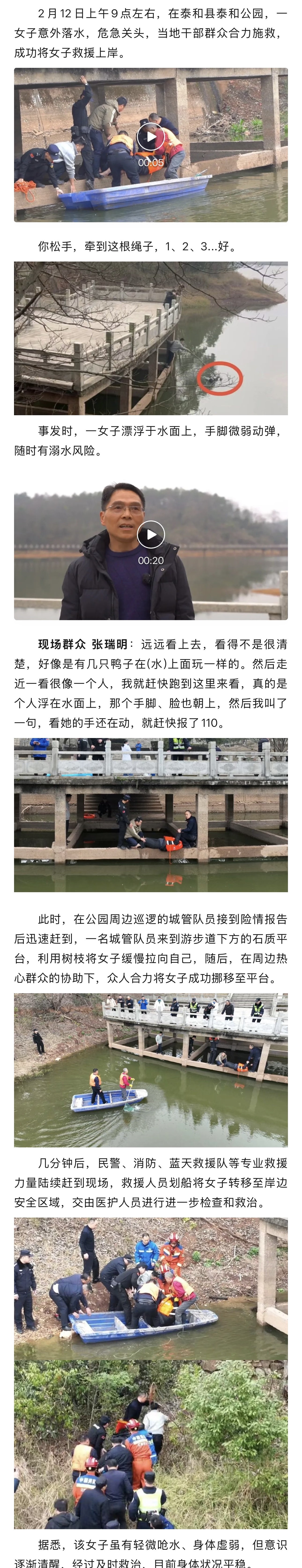 湖水冰冷刺骨!泰和干部群众暖心救援落水女子
