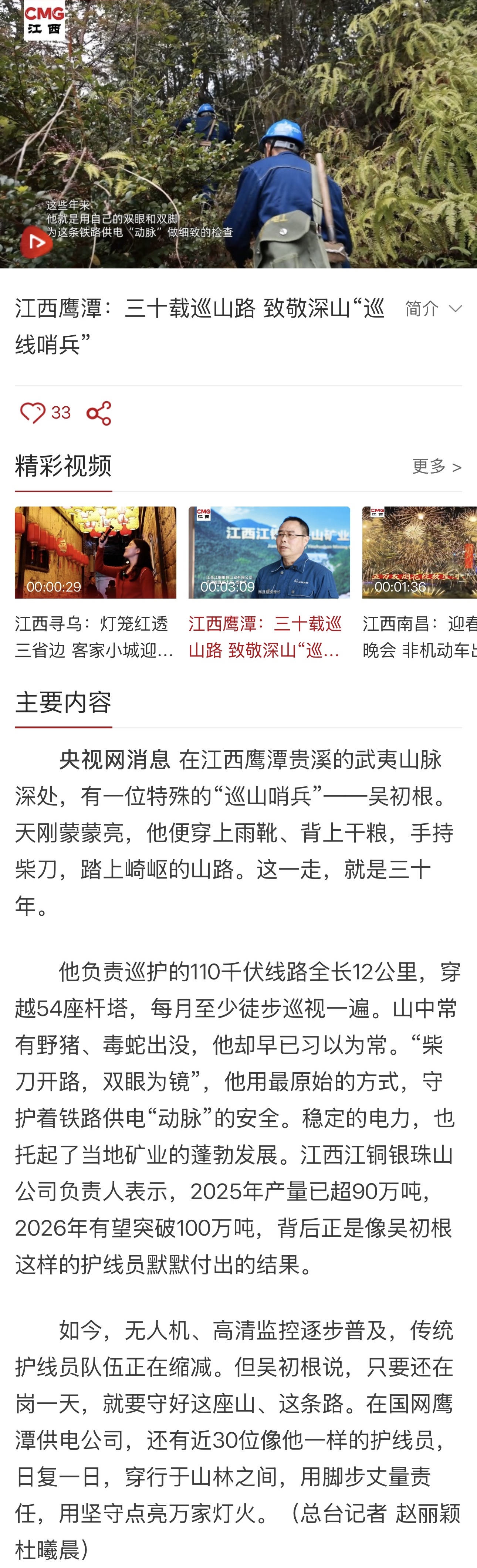 江西鹰潭:三十载巡山路 致敬深山“巡线哨兵”