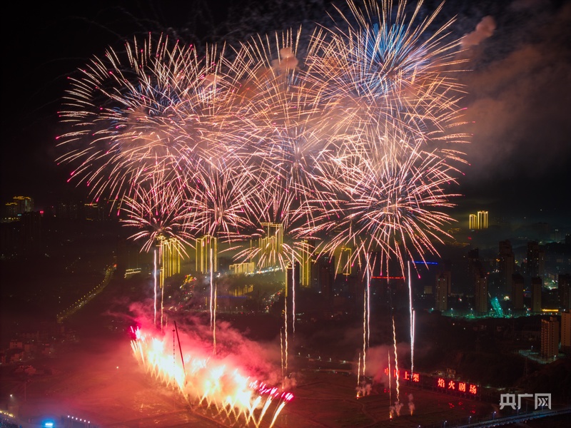 焰火在夜空中绚烂绽放(央广网发 刘秋雨 摄)