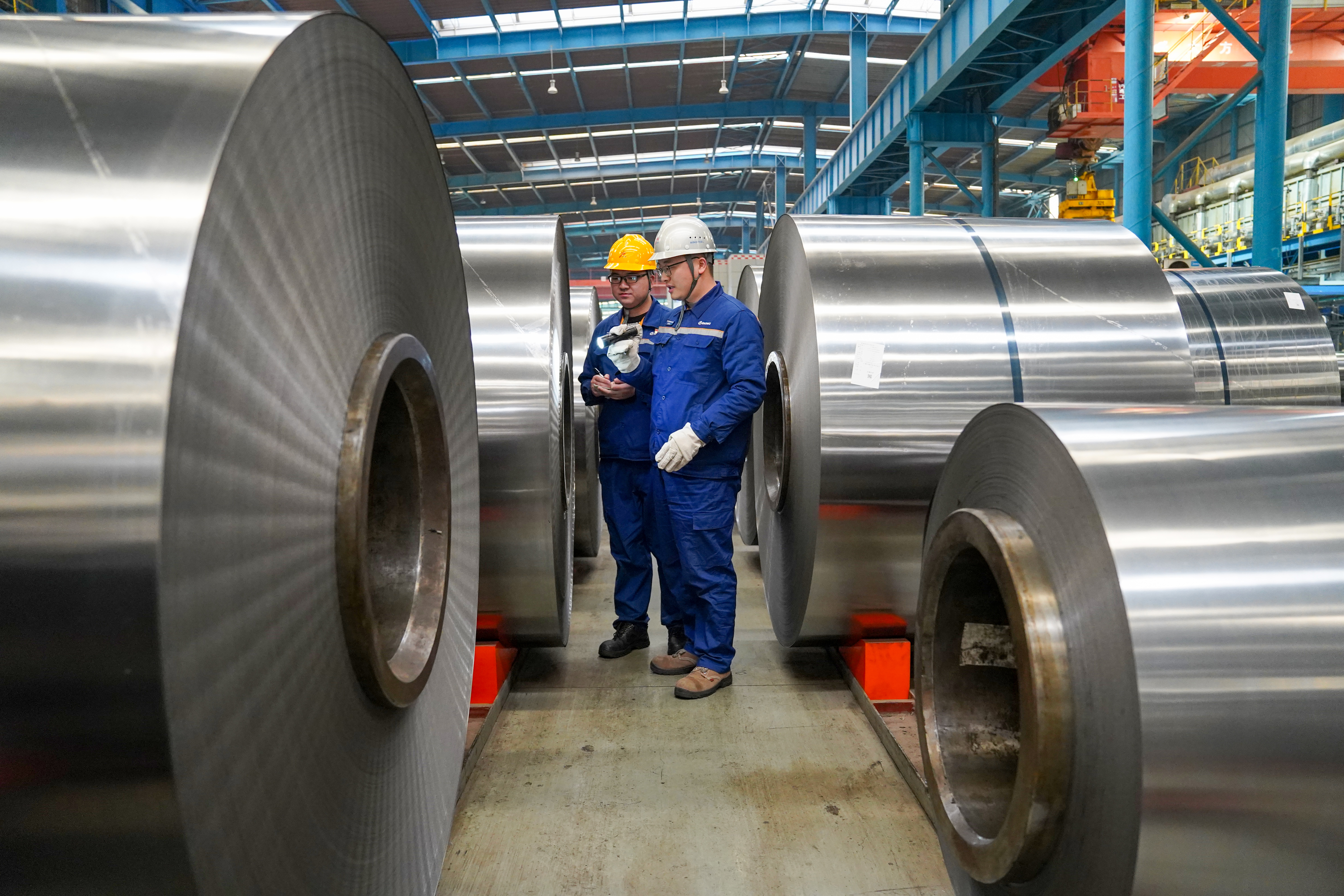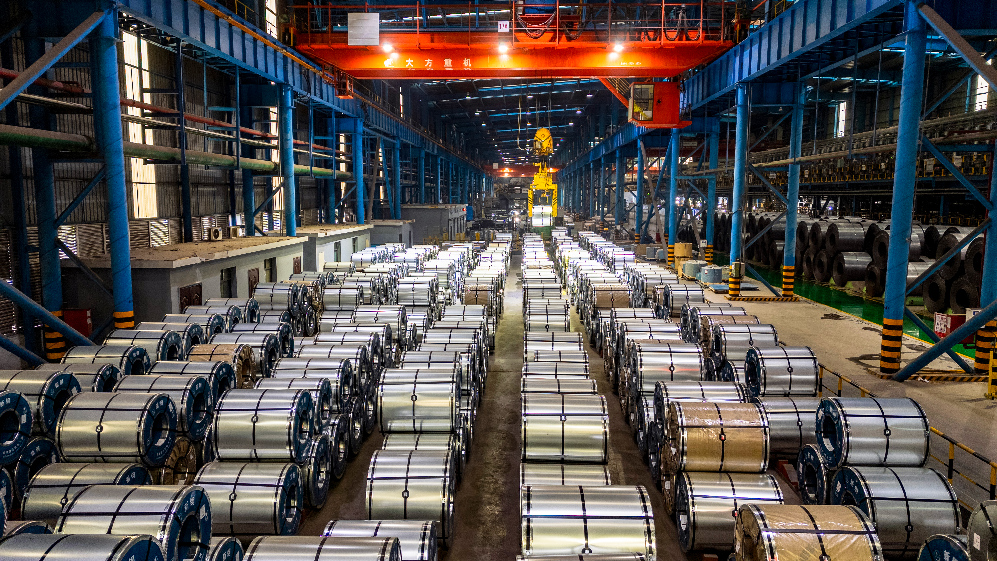 2月9日,记者走进新钢集团硅钢薄板事业部成品车间,仿佛进入了钢铁丛林:一个个巨大的钢卷泛着银光,犹如士兵整齐列阵。行车在高空穿梭,将一卷卷硅钢轻盈地装入等候的货车。
