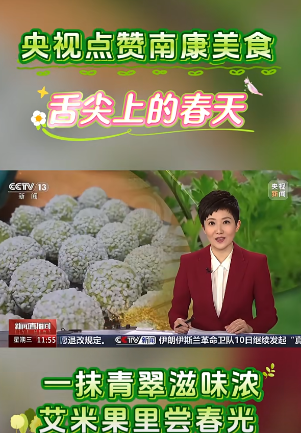3月11日,中央广播电视总台CCTV13《新闻直播间》栏目点赞南康美食,一抹青翠滋味浓,艾米果里尝春光。