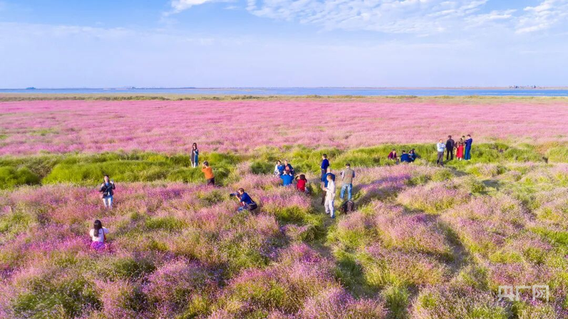 在余干水域,成片的蓼子花与湖水、草甸交织成一幅自然画卷(央广网发余干县融媒体中心供图)