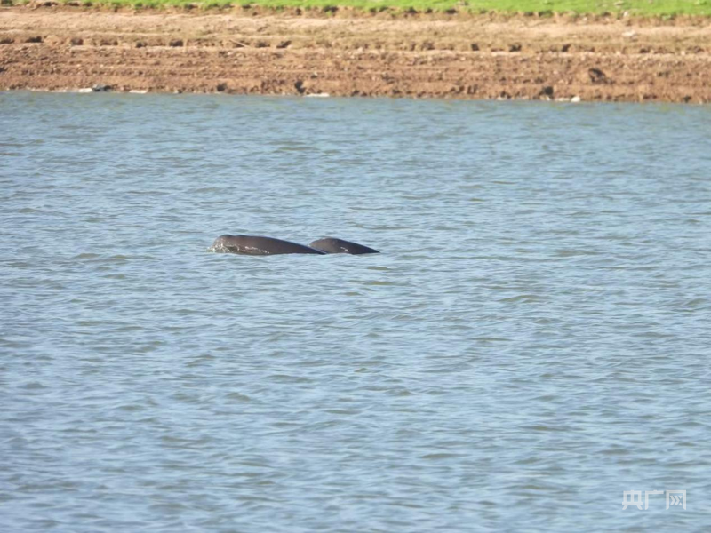 江豚湾上,一对母子豚正在惬意游泳(央广网发袁文斌摄)