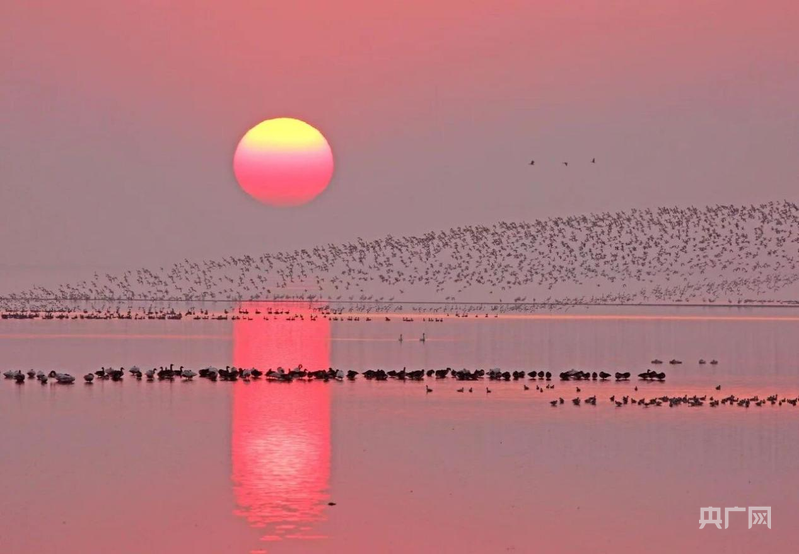 芦苇摇曳、候鸟翩跹、江豚逐浪,在江西上饶余干附近水域,每年都会有数以万计的候鸟如约而至,飞抵这片鄱阳湖东南岸的“梦里水乡”。