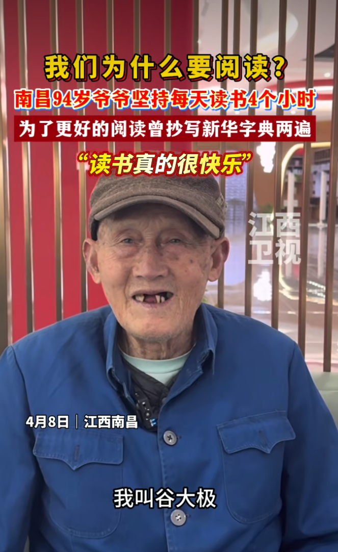 “读书真的很快乐”,南昌94岁爷爷坚持每天读书4个小时。