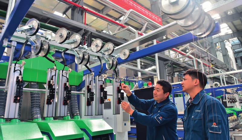在江西江铜华东电工新材料科技有限公司生产车间,技术工人在生产线上巡检设备(资料照片) 张善臣摄 / 本刊