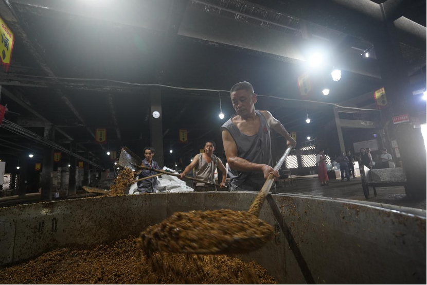 如今,古老的红褚条石窖池犹在。蒸汽氤氲中,匠人们踩曲的身影,与青铜器上铭刻的酿酒图景,在时光中重叠。