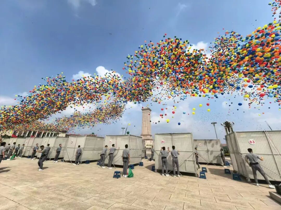 据悉,姚家灿,45岁,来自赣州市兴国县优悠气球公司,是纪念中国人民抗日战争暨世界反法西斯战争胜利80周年大会气球放飞仪式技术指导之一。其介绍,此次气球团队有着超126天的筹备计划、超2.4万人次的训练、超36万公里的集结行程,9月3日8万只100%可降解气球0失误的完美升空。 图为姚家灿与训练营地合照(受访者供图) 图为姚家灿在放飞仪式现场(受访者供图) 这次放飞的8万只气球,与普通气球存在明显不同。据介绍,本次放飞活动所采用气球的材质,与普通气球在成分、生产工艺两方面存在明显不同。普通气球多采用天然乳胶与多种化学添加剂混合制成,包括硫化剂、促进剂和防老化剂等。而本次大会放飞的气球,材质为全降解天然材料,主要成分为天然乳胶、植物淀粉和由玉米、甘蔗等植物发酵制成的聚乳酸(PLA)。这些材料均属生物基可降解材料,具有环保、无害、可完全降解的特性。 别小看了小小气球的材料。该特种天然乳胶材料具有无毒、无害、无刺激性,兼具可降解性与可持续性等优点。此次气球制造所使用的原料和生产工艺尚未有先例。 这种气球降解率有多高?这种气球所用材料在通常日照环境下,约一个月后,气球表面就会开始粉化,180天内自然降解率可达60%—70%,在1年至1年半的时间内可完全降解,最终分解为水、二氧化碳和有机质,不会造成永久性污染。