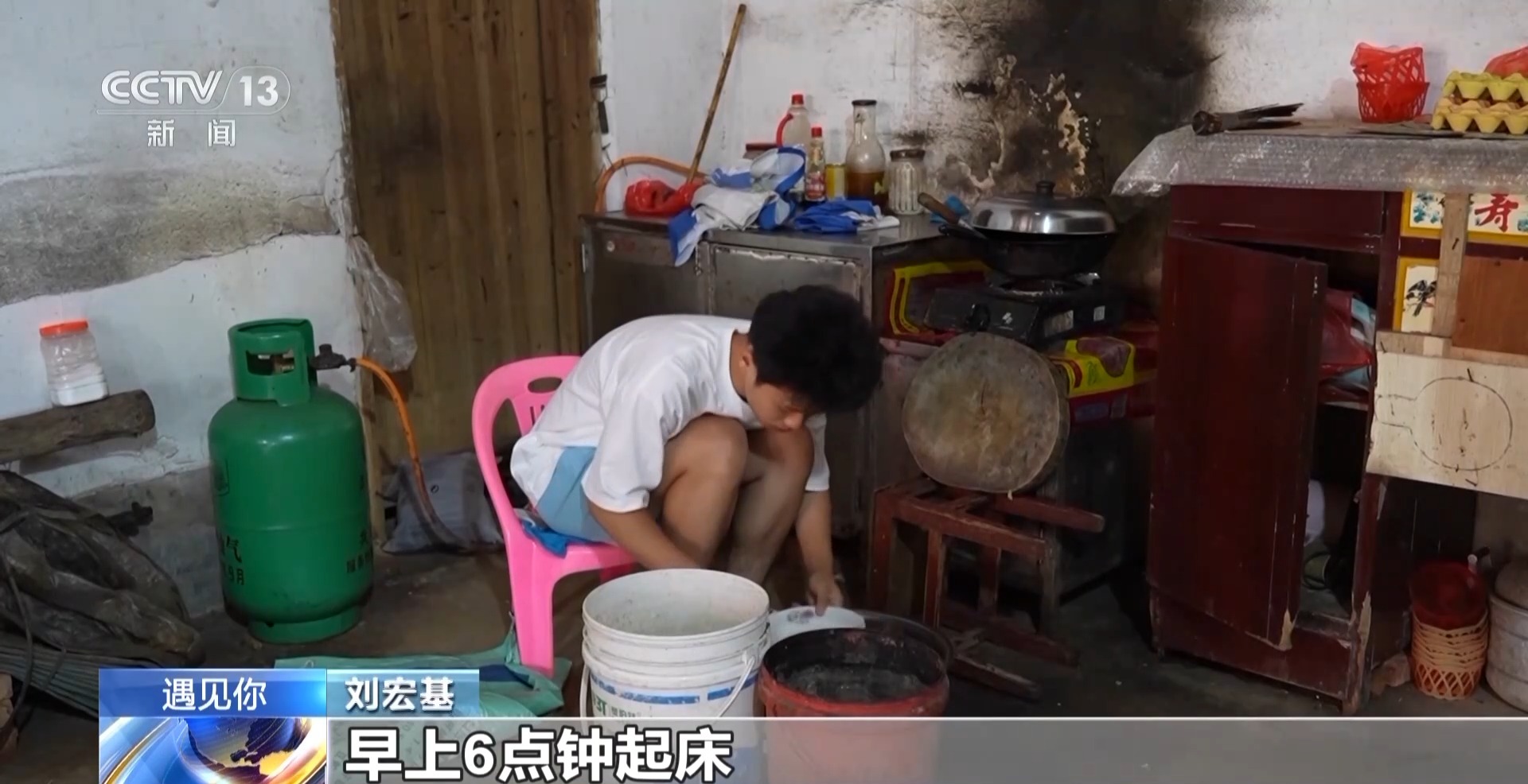 刘宏基:早上6点钟起床,给我爸爸洗漱,自己洗漱,然后买点菜做做饭,7点多钟就要出发去学校,我每次我都是卡着点去早读的。晚上回到家差不多十点五十了,洗澡,洗衣服,然后帮我爸处理身体上的问题,吃个饭就快12点钟了。