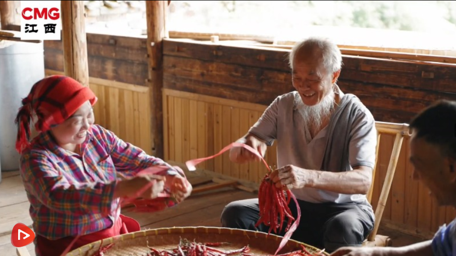江西婺源:丰收时节“晒秋”忙 白墙黛瓦映秋光
