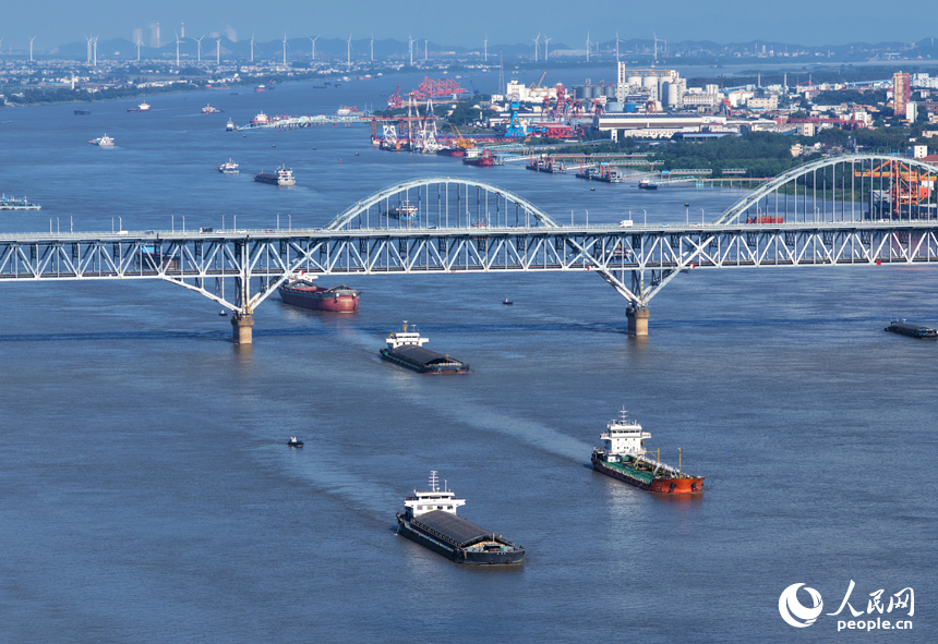 人民网九江10月8日电 (记者毛思远)10月6日,位于江西省九江市的长江航道,装运着生产生活物资的船舶往返穿梭,呈现出一派繁忙景象。