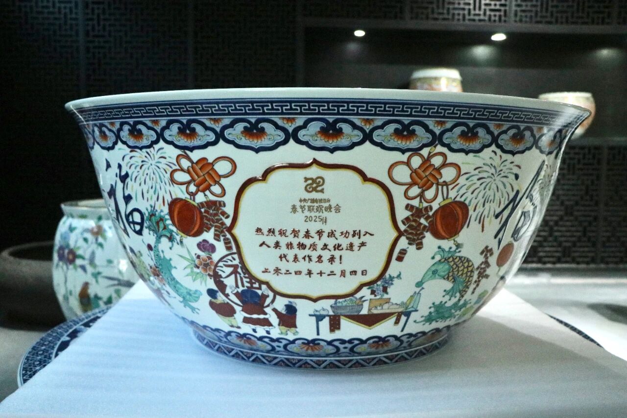 2025年春节,是首个“非遗版”春节。1月28日除夕夜,央视春晚舞台上,一只正德青花斗彩特大碗惊艳亮相——这只被命名为“春碗” 的大型瓷器,是景德镇为纪念春节申遗成功的献礼,更是千年制瓷技艺与民族文化的璀璨结晶。