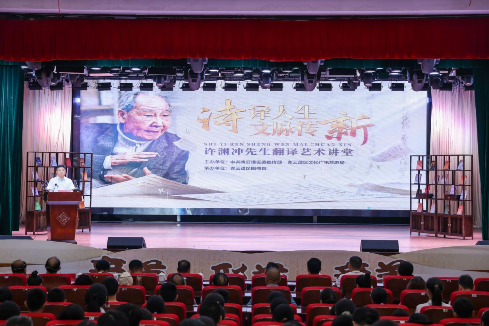 10月12日,“诗译人生·文脉传新”——许渊冲先生翻译文化艺术讲堂在南昌市青云谱区举行,许渊冲先生宗亲代表、许渊冲先生就读的南昌二中校友代表以及社会各界读者代表齐聚现场,共同聆听一代翻译家的艺术人生,深切感受跨文化传播的深远意蕴。