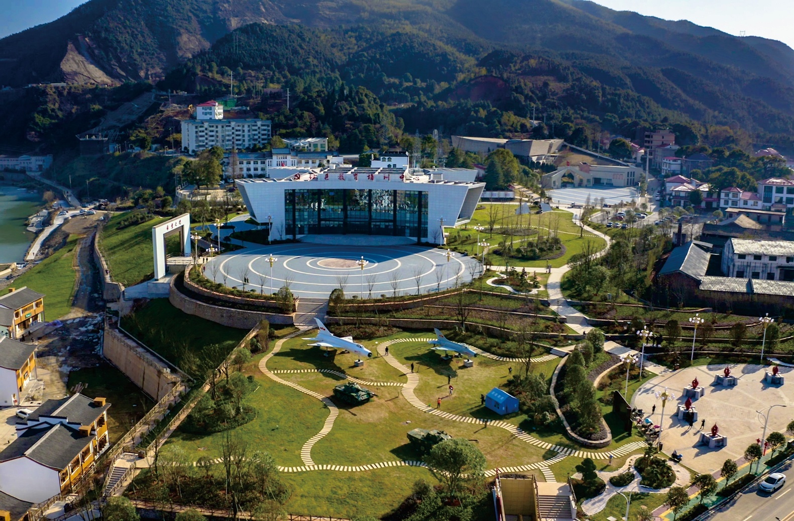 山口岩村大力挖掘红色资源、发展红色产业,精心打造了袁水源红色文化园,构建起多元红色地标体系,形成了集党性爱国教育培训、军事教育研学、红色生态研学、湿地休闲观光及田园农耕文化于一体的综合性红色文化园旅游景区。同时,修建卢德铭烈士陵园、卢德铭小学、村史馆、廉洁文化长廊、红色文化广场,让红色地标成为精神传承的“打卡点”。