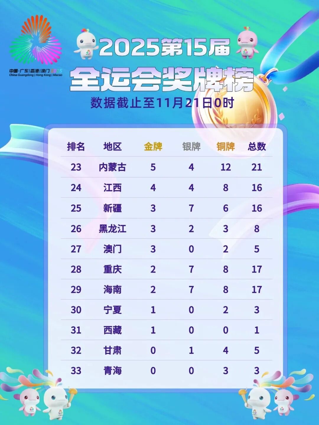 共获16枚奖牌