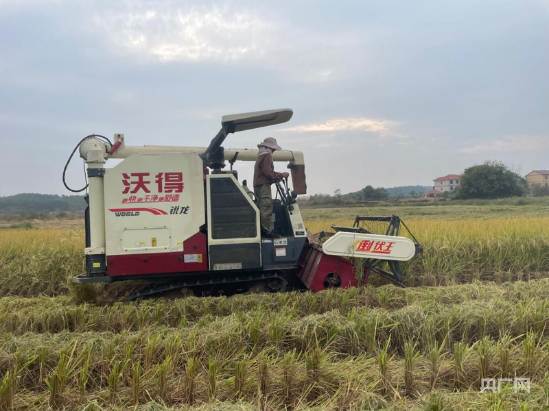 抢收稻子(央广网发 肖振华 摄)