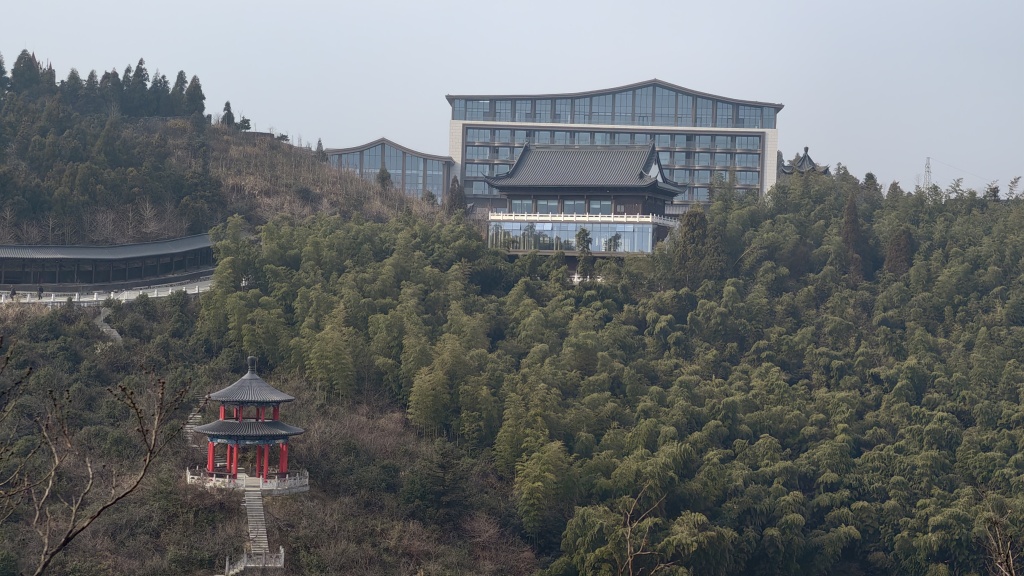乘云端索道登顶梅岭,新建的酒店耸立在湖泊边。 澎湃新闻记者 王洛伊 图