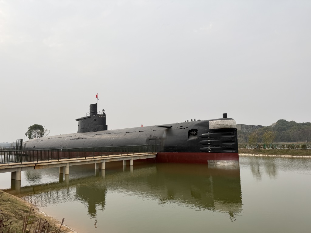 南昌军事主题公园重武器展示区的潜水艇。澎湃新闻记者 王洛伊 图