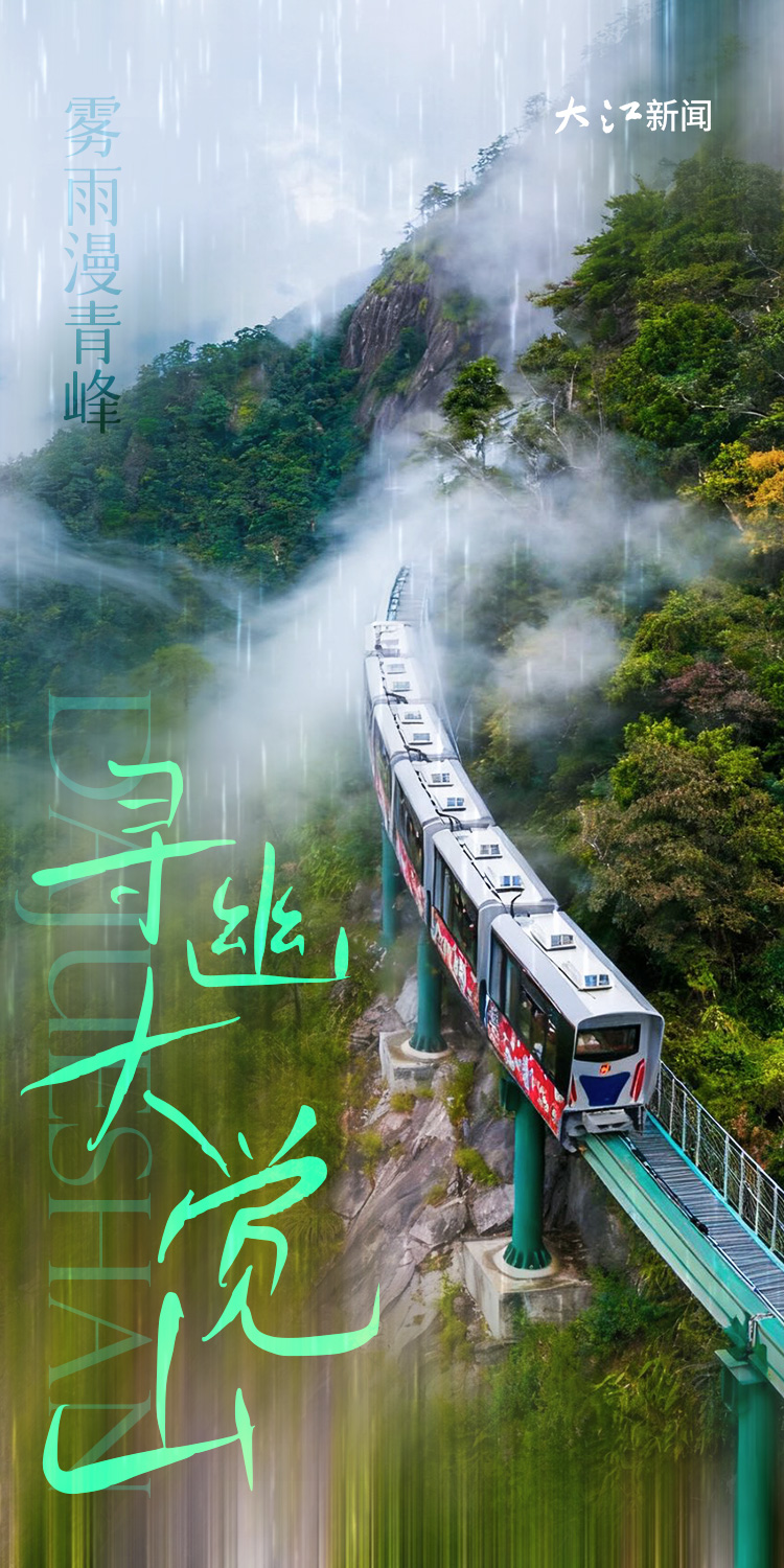 烟雨为大觉山镀上了一层空灵滤镜,走在山间,仿佛闯入了避世仙境。乘缆车穿行雾中,俯瞰绿松石色湖面映着烟雨,每一幕都值得定格。