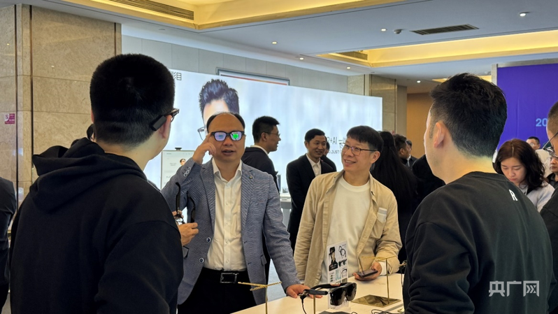 参展嘉宾体验余江AI智能眼镜产品(央广网实习记者李欣颖摄)