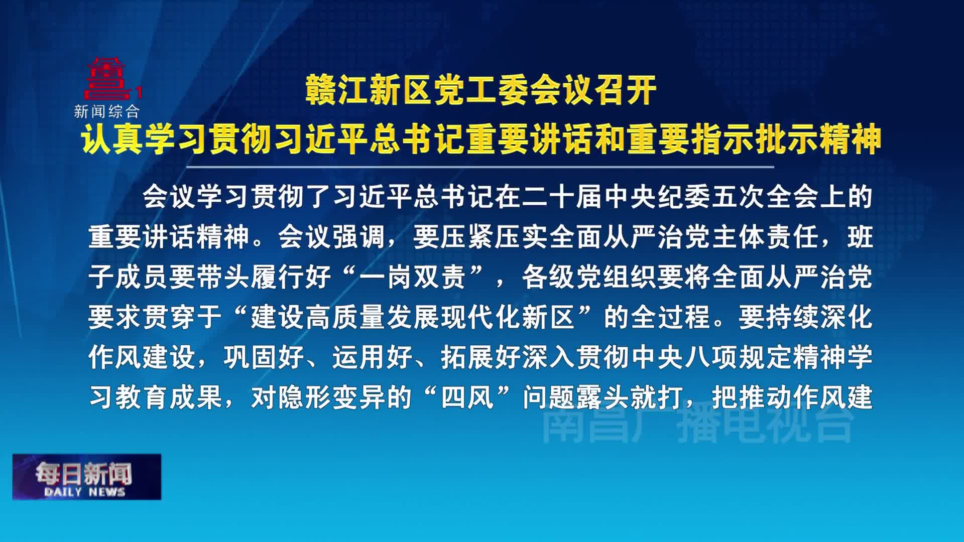 赣江新区党工委会议召开 认真学习贯彻习近平总书记重要讲话和重要指示批示精神2026-1-27