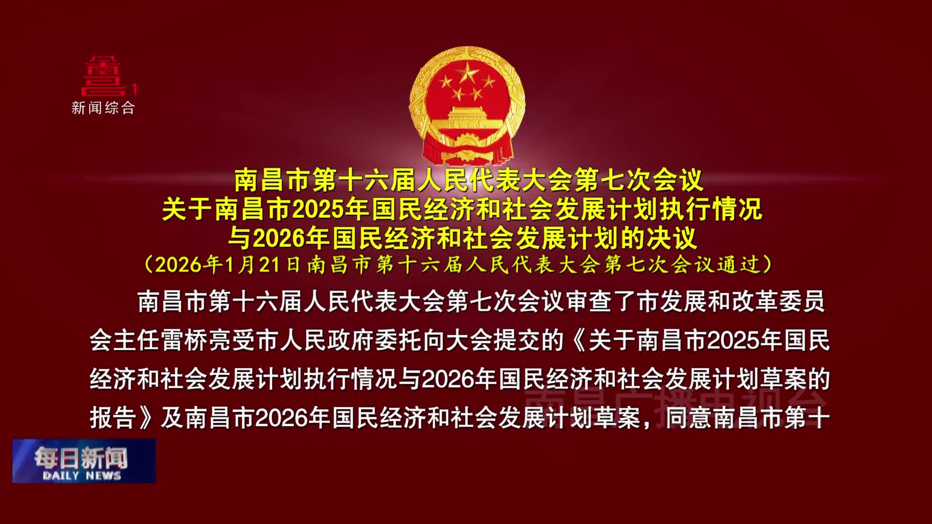 南昌市第十六届人民代表大会第七次会议关于南昌市2025年国民经济和社会发展计划执行情况与2026年国民经济和社会发展计划的决议