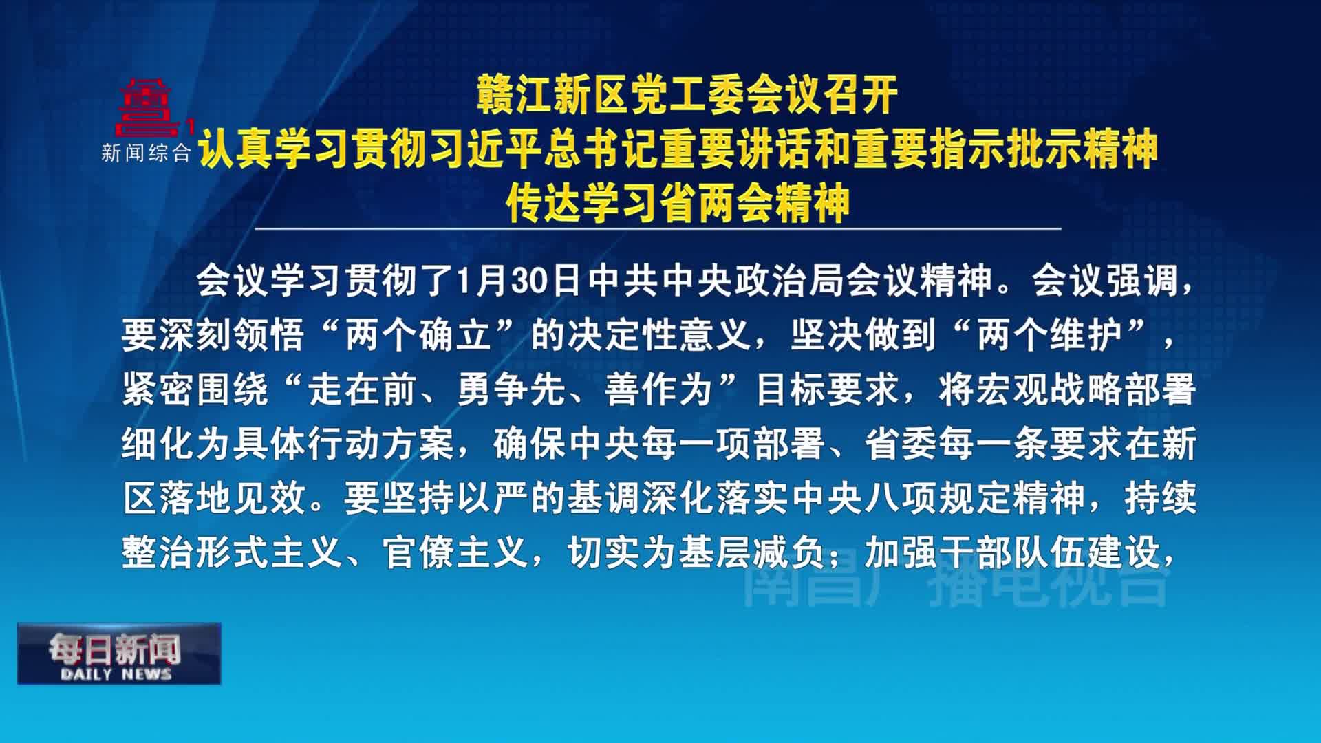 赣江新区党工委会议召开 认真学习贯彻习近平总书记重要讲话和重要指示批示精神2026-1-16